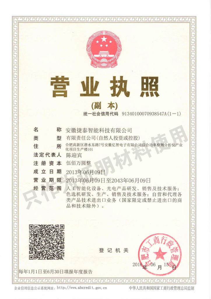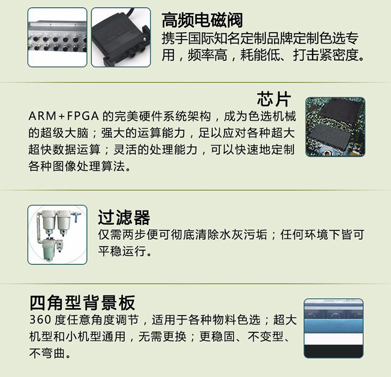 安徽捷泰智能科技有限公司是一家專業從事智能礦石、礦粉、大米、雜糧、塑料、工業等色選機設備的研發、生產、銷售、售后于一體的高新技術企業。由海外華人企業家在行業云集的科教名城合肥進行投資興辦,地址位于安徽省合肥市高新區在泰國建有生產基地。公司自成立以來,先后榮獲“安徽省省級新產品”、“高新技術企業”、合肥市“科技小巨人”企業等榮譽稱號。捷泰智能公司以“技術、質量、服務”為核心,在研發、生產、采購、管理、市場、售后各環節吸納了大量的科班專業人才。公司完全自主知識產權研發的“捷泰”品牌色選機,一經推出便贏得客戶的普遍認可。產品廣泛應用于礦石、礦粉、大米、雜糧、塑料、工業等領域。并遠銷海內外!