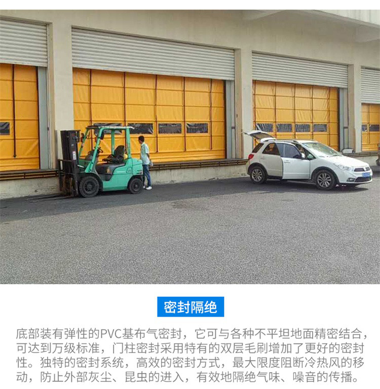 | 密封性能 | 堆積門門簾底端裝有加重隔氣布,它可與各種不平坦的地面嚴(yán)密結(jié)合,門框兩側(cè)滑道 | |