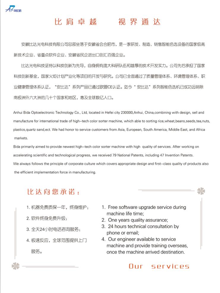 6、強大的操作系統,配有獨立的色選模式,每種模式具有存儲記憶功能,再次分選無需再次設置,并能得到好的分選效果。