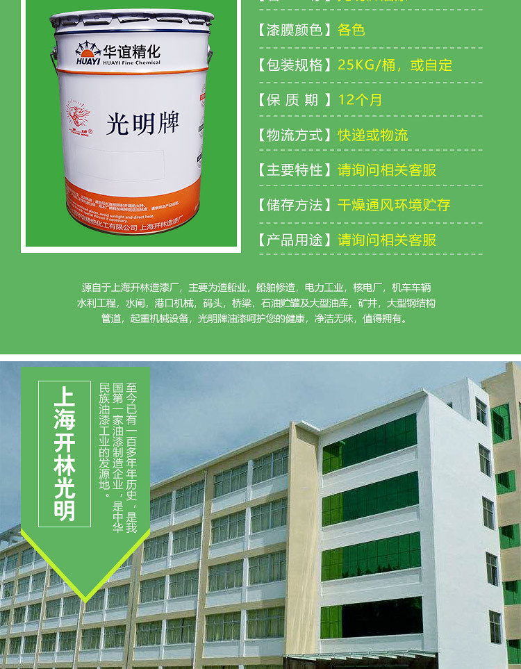 儀器儀表、糧食機械等產品、鋼結構或鋁合金表面作高性能面漆。