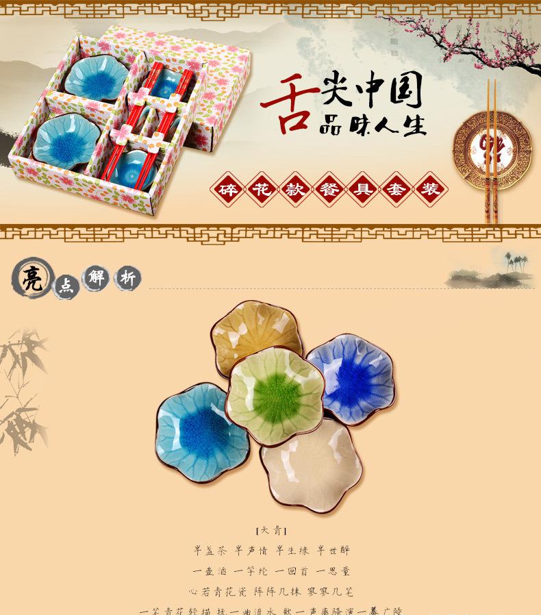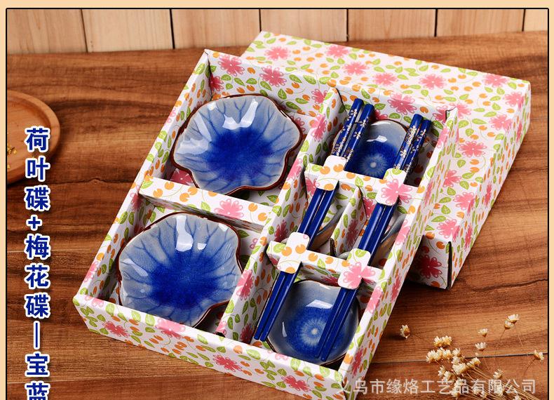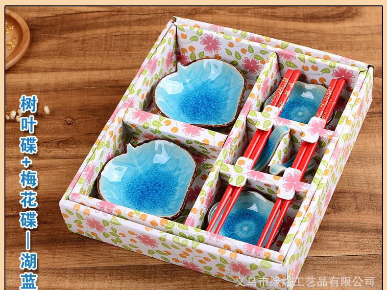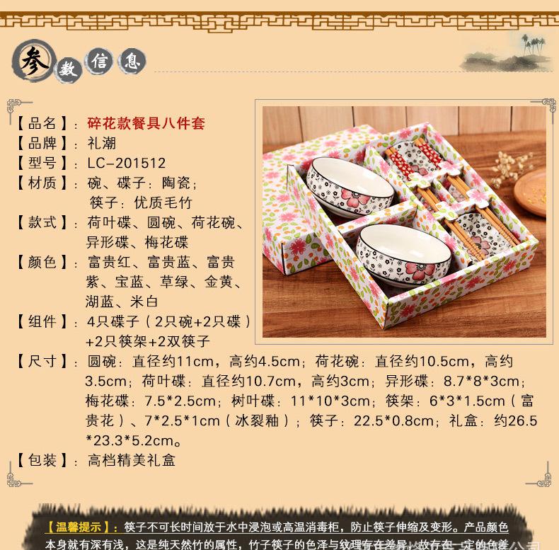 創意陶瓷餐具套裝碗筷子 商務喬遷禮品結婚婚慶回禮 冰裂釉8件